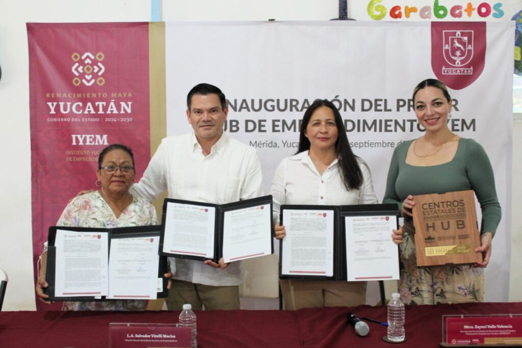 Mérida, Yucatán, a 19 de septiembre de 2025.- Con el propósito de impulsar ideas, proyectos y capacidades emprendedoras en comunidades rurales y municipios con alto potencial de desarrollo, el Instituto Yucateco de Emprendedores (IYEM) inauguró el Primer HUB de Emprendimiento en las instalaciones de Renacer ADN, ubicadas en la colonia Emiliano Zapata Sur I.