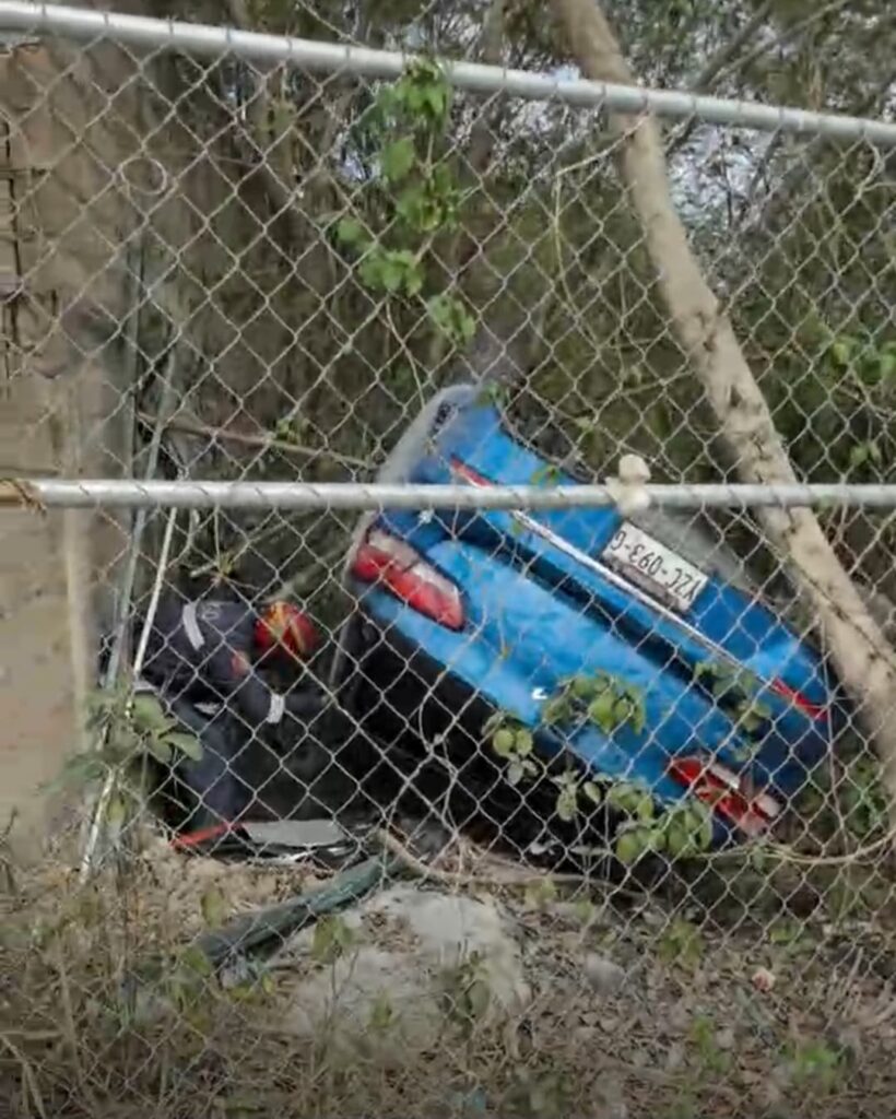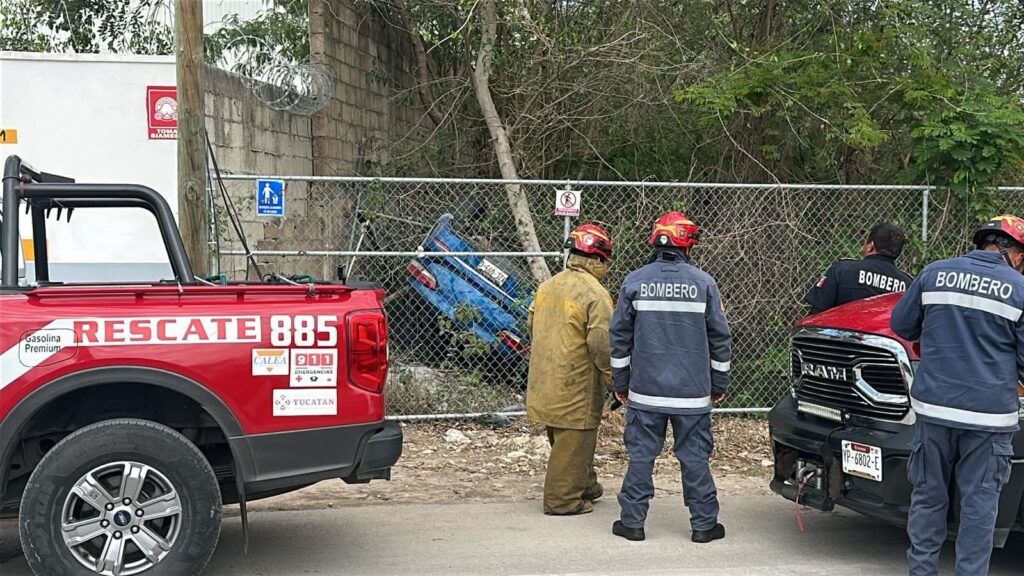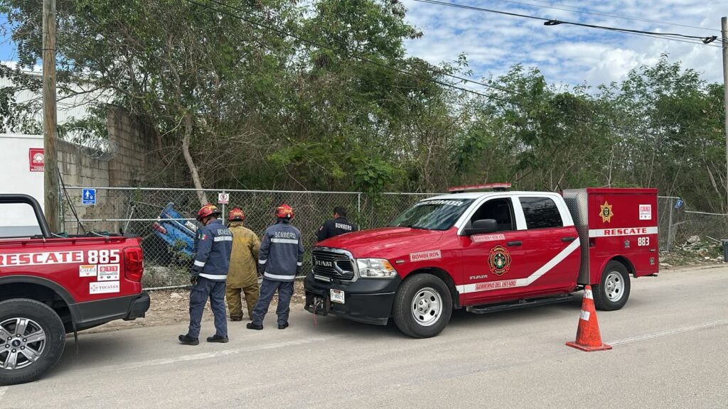 Un accidente vial se registró en la lateral del kilómetro 47 del Periférico de Mérida, luego de que el conductor de un vehículo perdiera el control y terminara volcado dentro del monte.