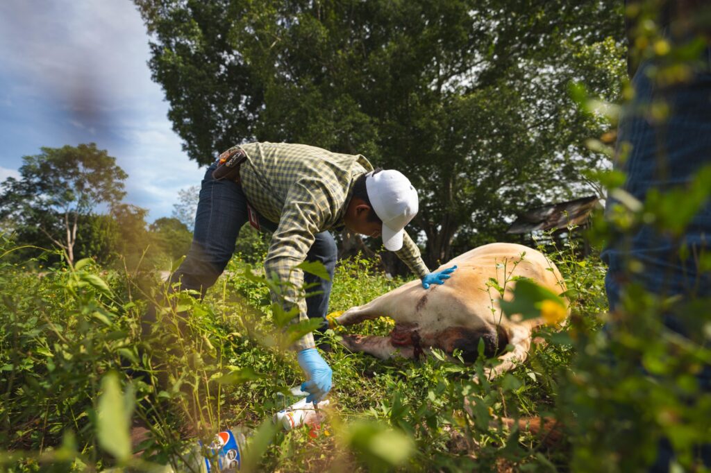 Un equipo de 26 médicas y médicos veterinarios da respuesta inmediata a las y los productores que reportan casos de gusano barrenador en sus animales, brindándoles tratamientos gratuitos y eficaces.