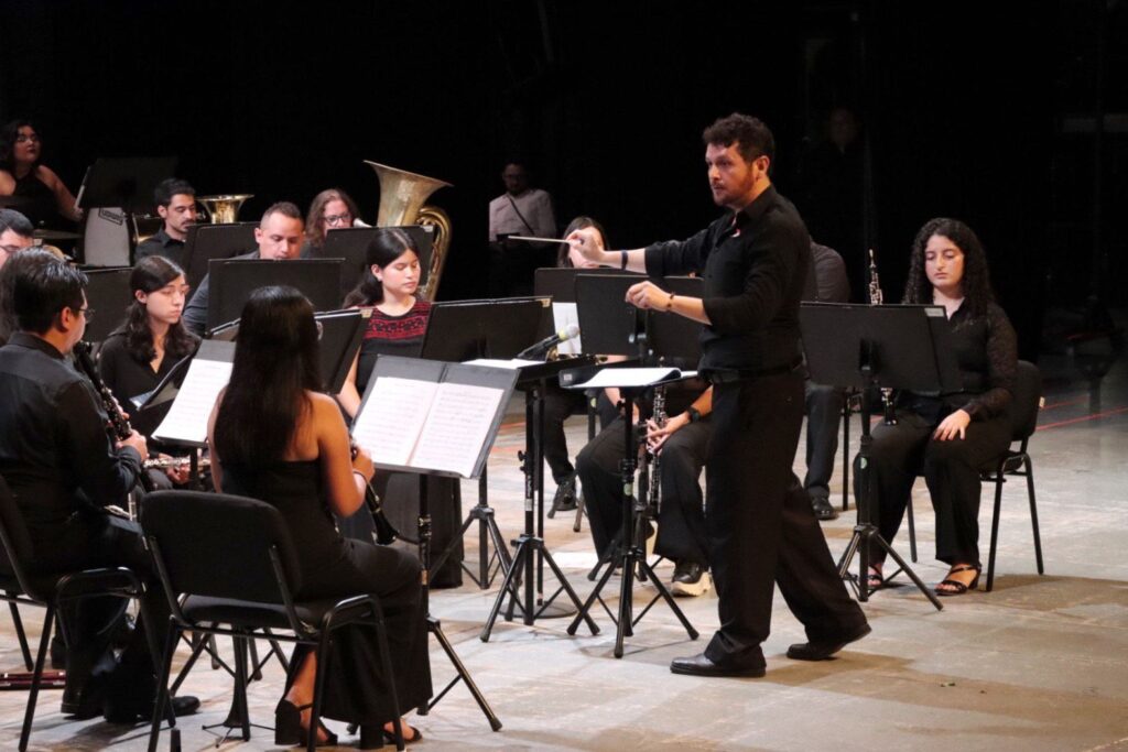 Mérida, Yucatán, a 19 de septiembre de 2025.- La Banda Sinfónica de Yucatán “Luis Luna Guarneros” resonó anoche en el teatro Armando Manzanero, mostrando el talento de sus jóvenes integrantes bajo la batuta de cuatro destacados directores de orquesta del sureste del país.