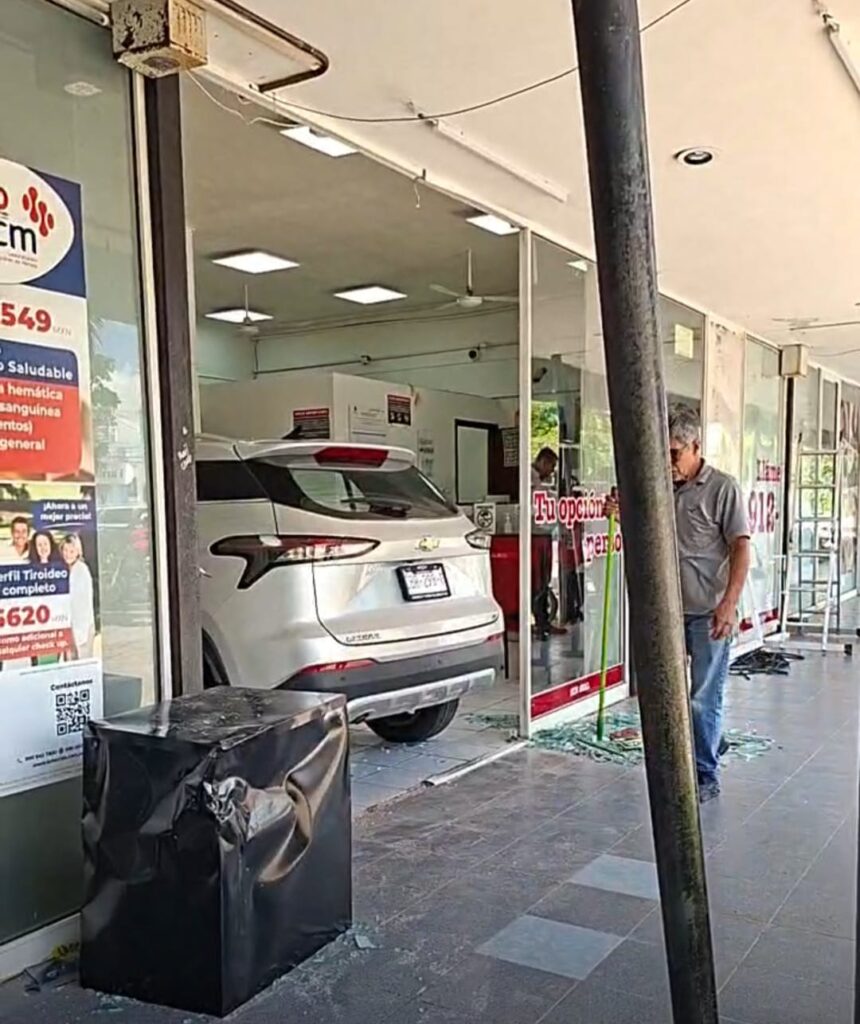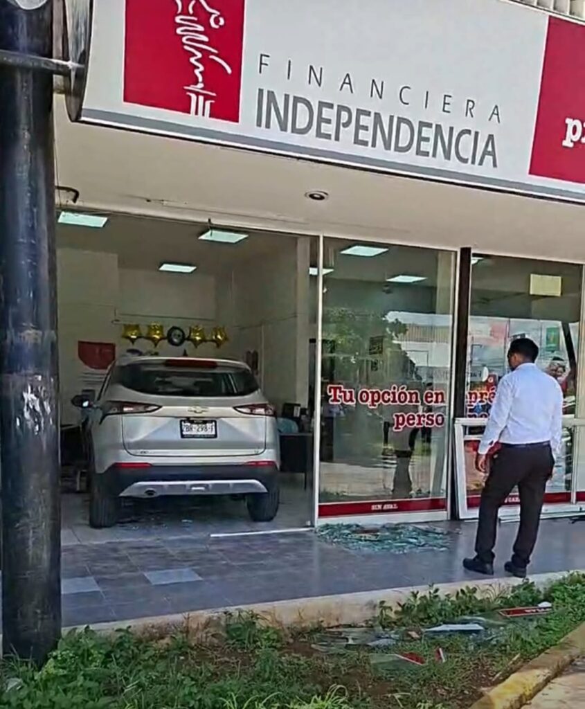 Conductora de una camioneta Chevrolet perdió el control y se estrelló contra la sucursal de Financiera Independencia en Serviplaza, ubicada en la calle 50 de la colonia Miguel Hidalgo.