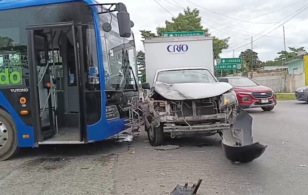 El conductor de la camioneta de carga perdió el control del volante y se estrelló contra un camión de Va y Ven que hacía su alto.