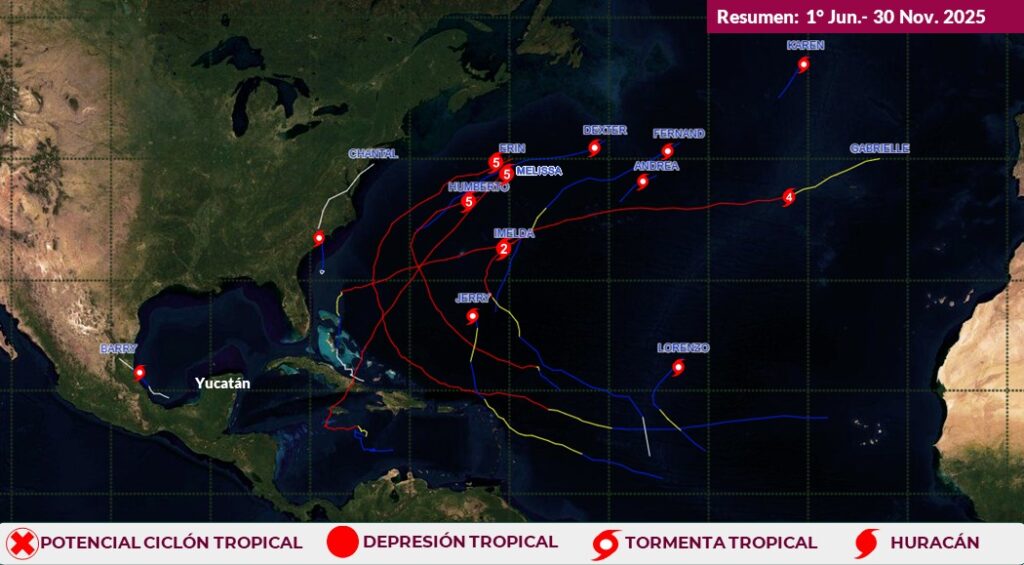 La temporada, catalogada dentro del promedio histórico, transcurrió sin afectaciones directas en Yucatán, donde se reforzaron capacidades municipales y protocolos de respuesta ante emergencias.