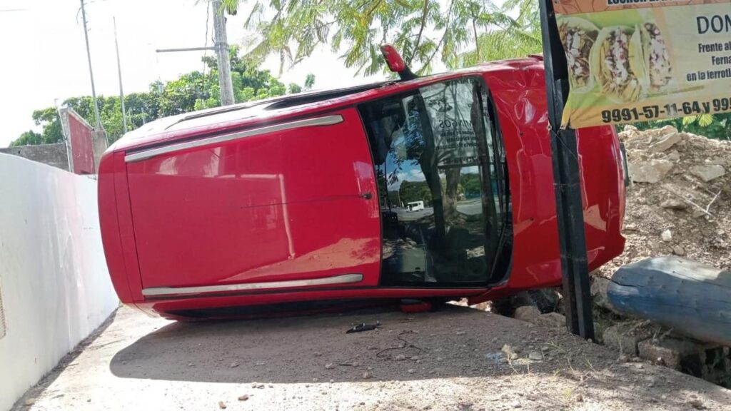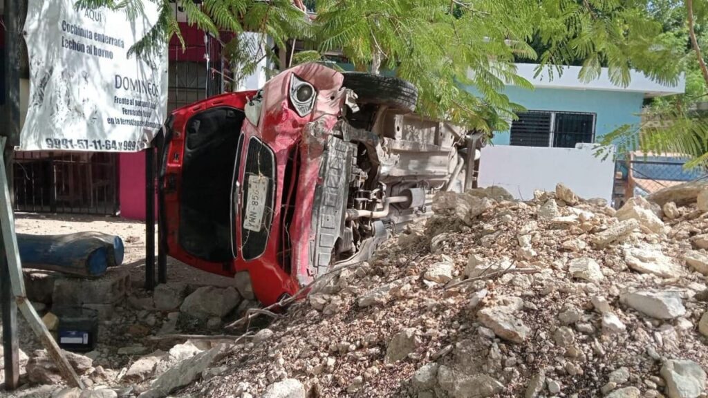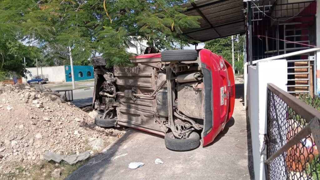 Un automóvil Spark volcó en la calle 60 con 169 en la colonia San José Tecoh 2, al sur de Mérida.
