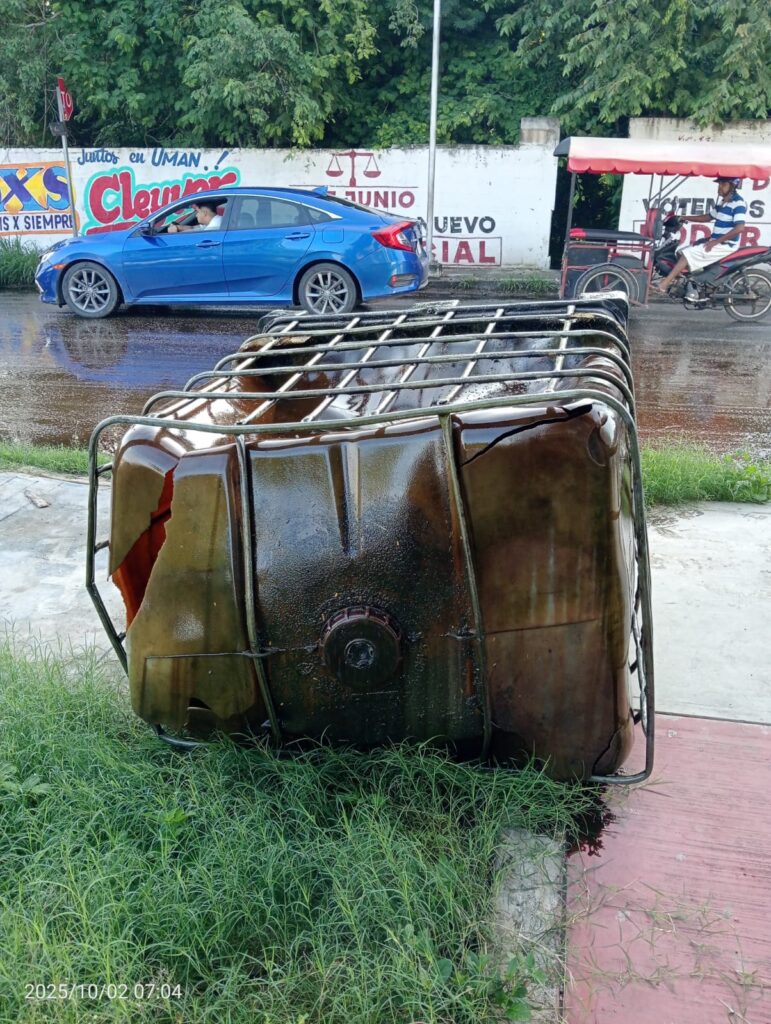 El conductor de una camioneta de carga perdió un contenedor de más de 100 litros de aceite quemado que llevaba en la parte trasera de su unidad sobre la salida hacia Kinchil, en Umán por lo que el líquido se regó sobre el asfalto y causó la caída de varios motociclistas y derrapones a automovilistas.
