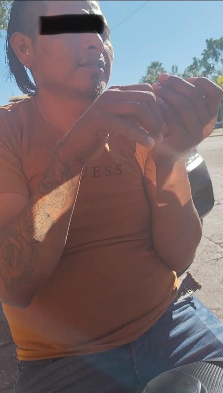Al ser detenido, el sujeto se puso agresivo y forcejeó con los oficiales, llegando incluso a morder a uno de ellos en el dedo.