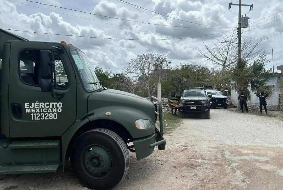 Agentes de la SSP Yucatán, y Defensamx cuidaron la seguridad perimetral mientras los federales realizaban las diligencias.
