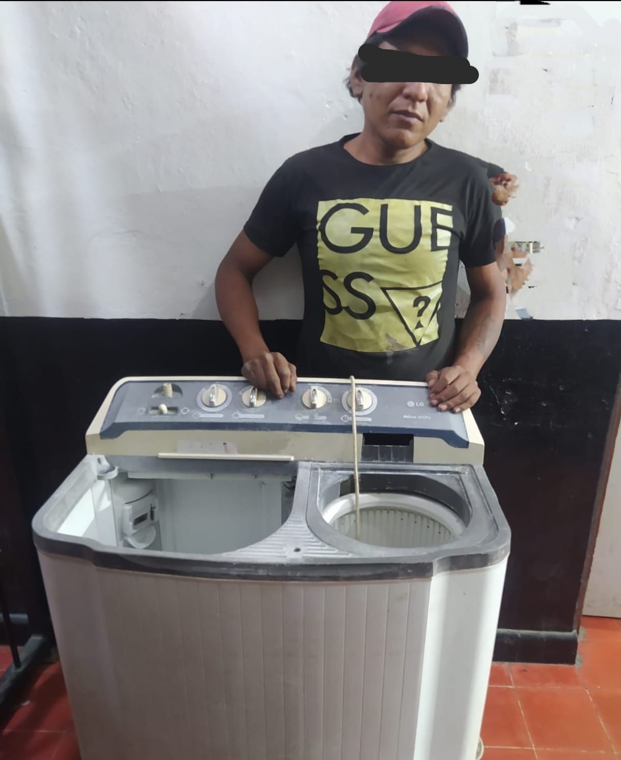 El detenido confesó haber vendido la lavadora a un amigo conocido como “Chumchum” por 200 pesos.