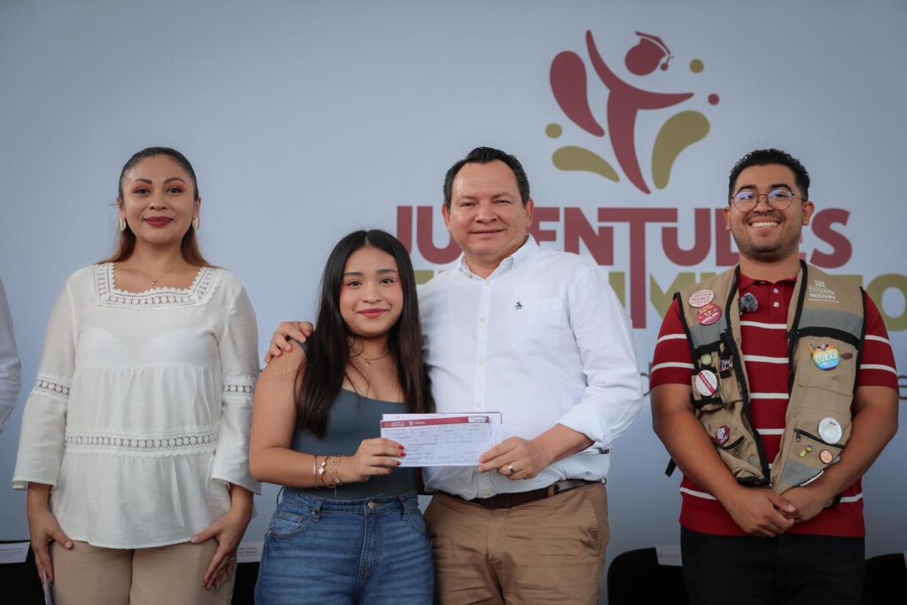 “Este programa es un compromiso que hoy estamos cumpliendo, porque en el Gobierno del Renacimiento Maya tenemos palabra, y la palabra se cumple. Esta es la esencia de Juventudes Renacimiento, un programa pensado para acompañarles hasta que ustedes tengan su título en la mano”, sostuvo.