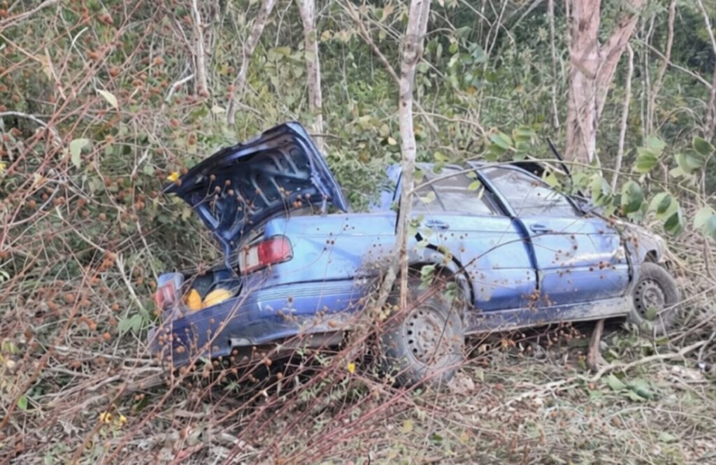Al parecer el conductor perdió el control de la unidad y se salieron del camino, chocaron con unos árboles y montículos de tierra, ellos sufrieron fuertes golpes mientras que el auto quedó destruido.