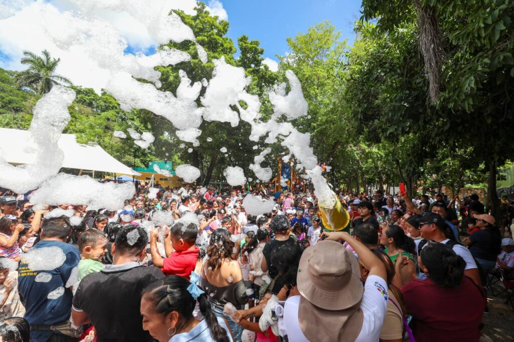 En este festejo, las familias disfrutaron de artistas de circo y talento yucateco en diversos shows infantiles, una lluvia de pelotas que divirtió a grandes y pequeños, además de baño de espuma, y el bazar orgánico y artesanal Manos Verdes Mérida.