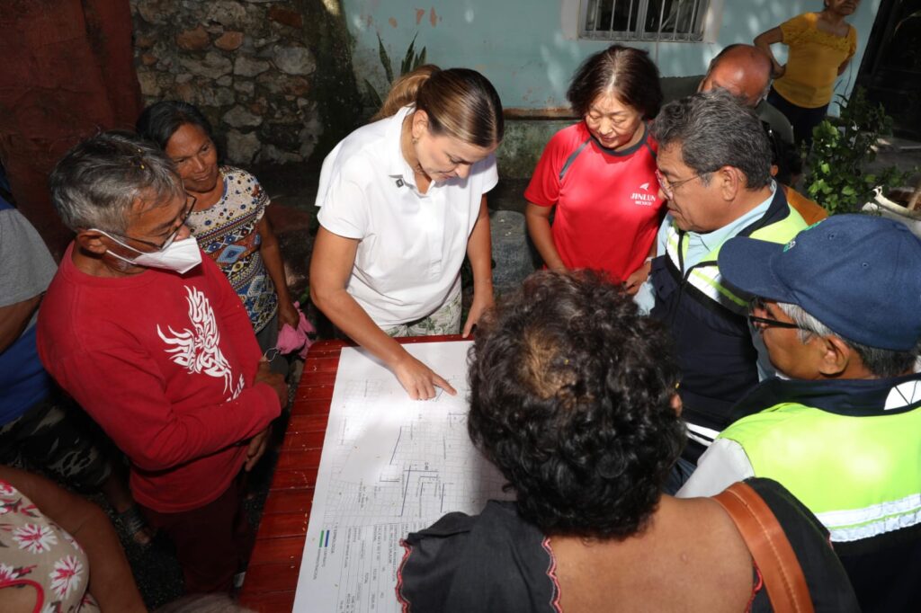 Acompañada de Sergio Chan Lugo, director de Obras Públicas; Luis Jorge Montalvo Duarte, director de Servicios Públicos, y la regidora Paulina Sánchez Díaz, se trasladó al fraccionamiento Yucalpetén.