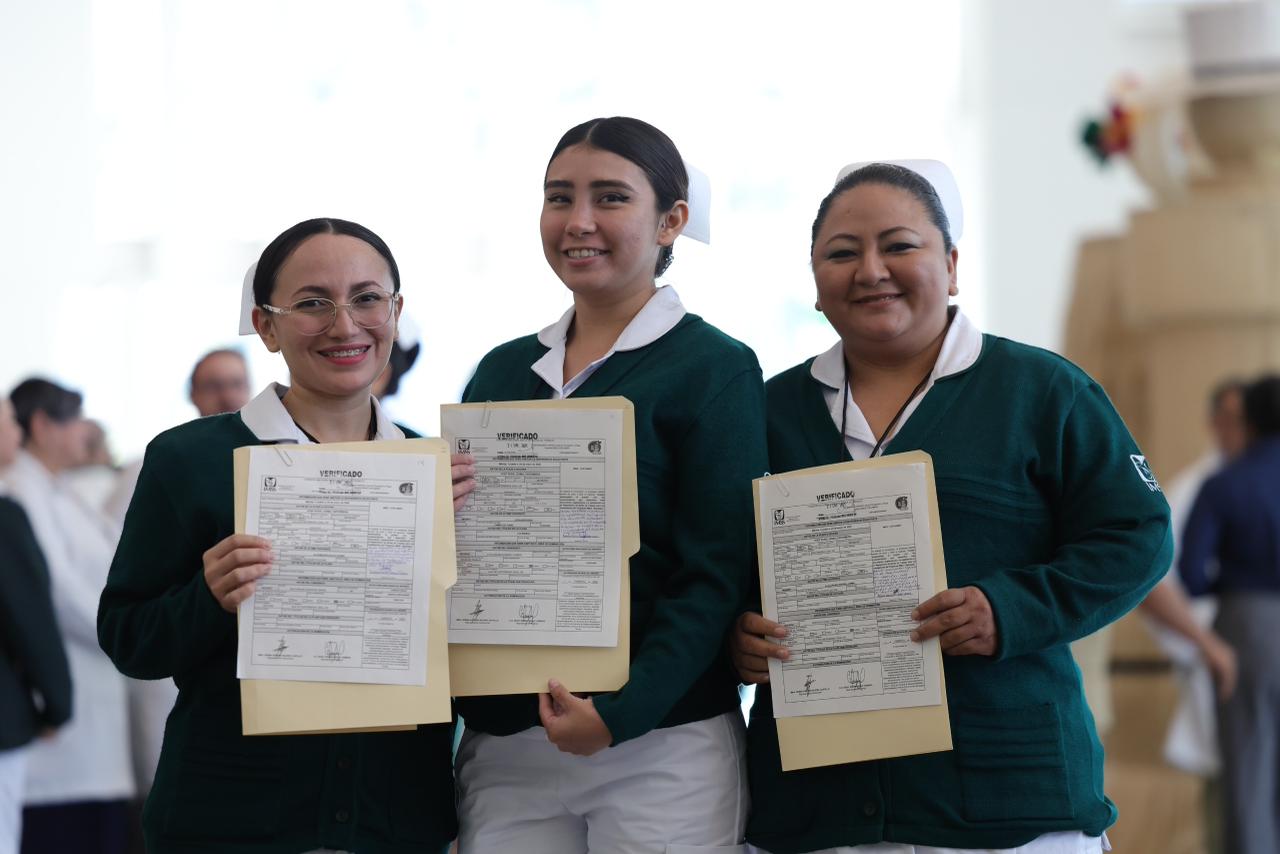 Las 124 bases y nombramientos entregados corresponden a 36 médicas y médicos; 47 enfermeras y enfermeros; tres paramédicas y paramédicos; y 38 integrantes del personal administrativo, con el objetivo de fortalecer la atención en las unidades médicas del estado.