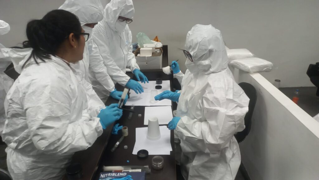 Durante las sesiones, los participantes realizaron prácticas de fotografía forense, levantamiento y preservación de indicios, elaboración de croquis técnicos y análisis de escenas de crimen, además de la identificación de signos externos en cadáveres.