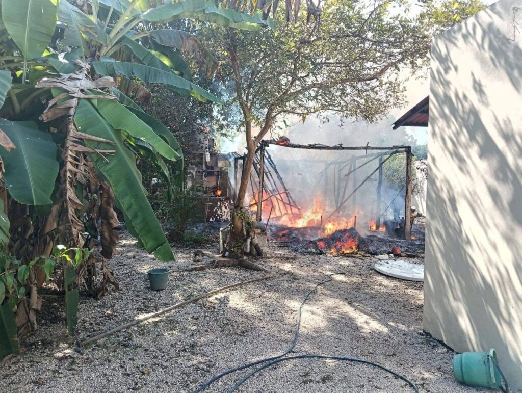 Una palapa fue destruida por un incendio en Sitilpech, pese a los esfuerzos de vecinos y dueños por controlarlo.
