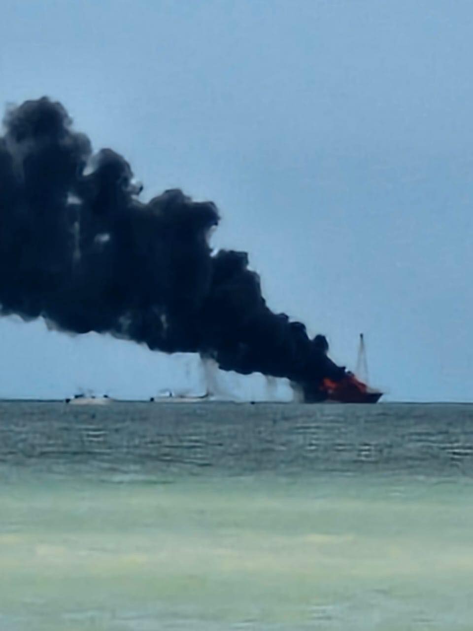 El siniestro ocurrió aproximadamente a 6 kilómetros mar adentro, cerca de la costa de Puerto Progreso. Según informes preliminares, la embarcación comenzó a arder por causas aún no determinadas.