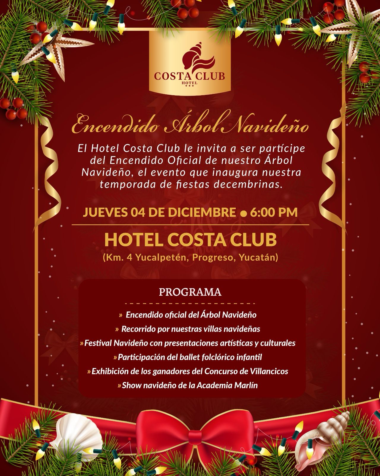 Invitan al encendido de árbol navideño en el Hotel Costa Club