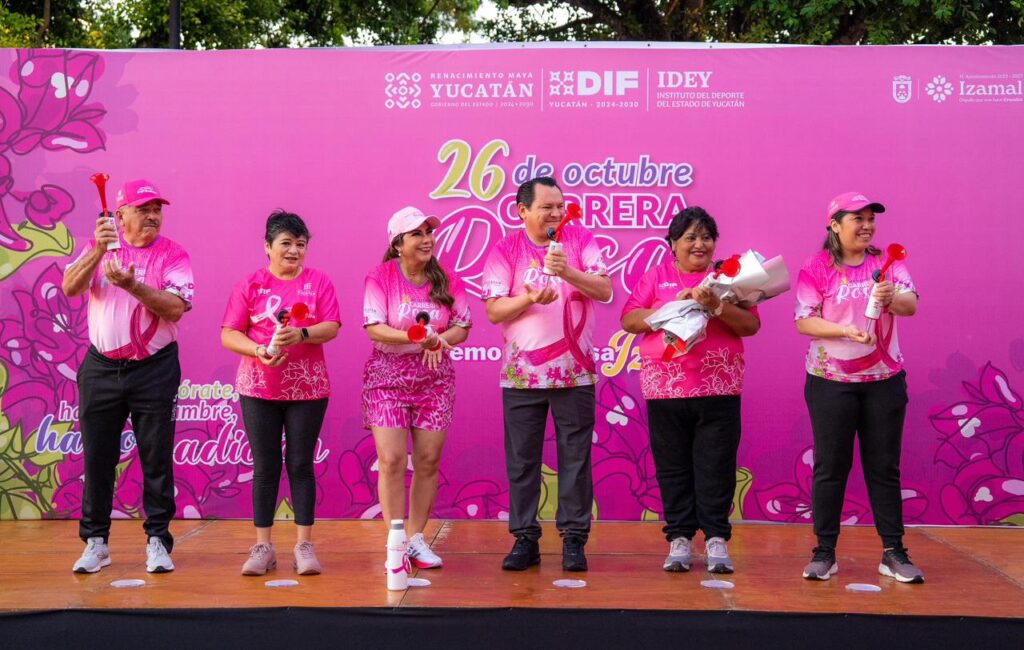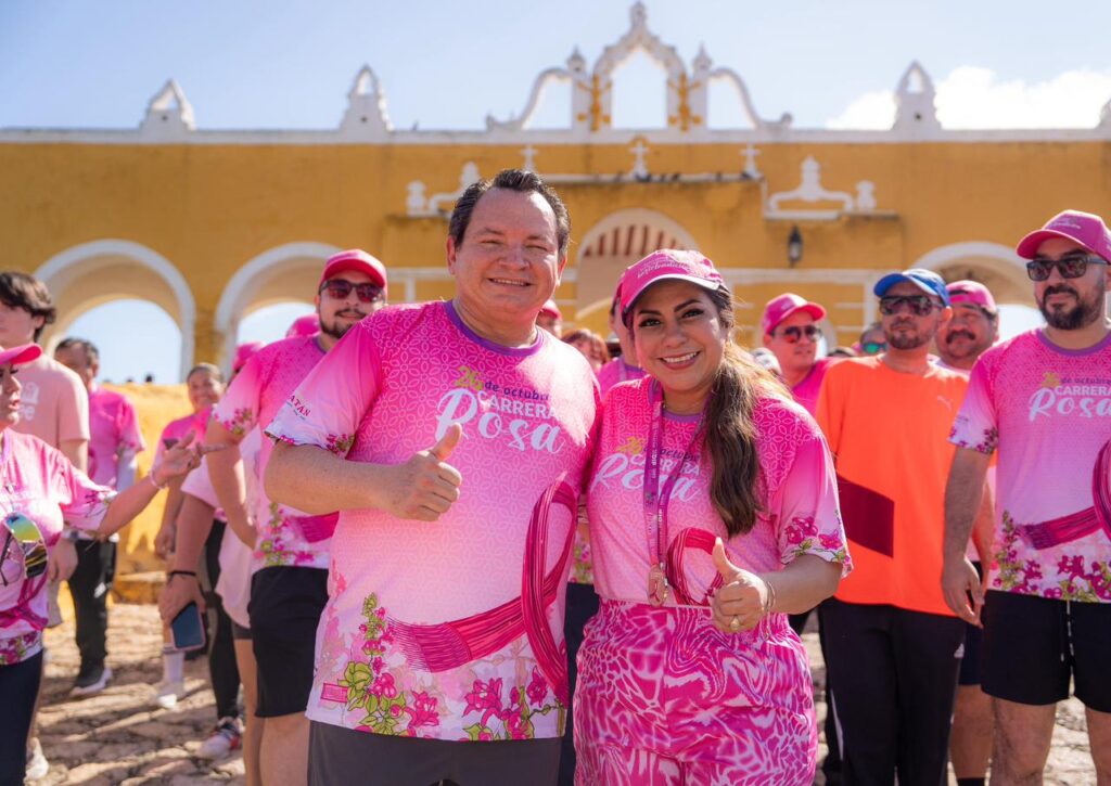 El Gobernador Joaquín Díaz Mena y su esposa, la Presidenta Honoraria del Sistema DIF Yucatán, Mtra. Wendy Méndez Naal, encabezaron en Izamal las actividades enmarcadas en la Carrera Rosa 2025, reafirmando el compromiso del Gobierno del Estado con la salud y la prevención del cáncer de mama.