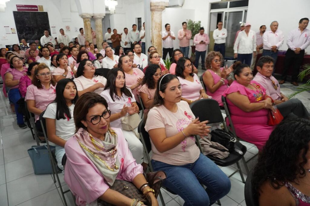 Durante el evento, las y los asistentes expresaron su apoyo a dos colaboradoras que luchan actualmente contra esta enfermedad. Además, proyectaron mensajes de sensibilización y videos informativos como parte de la Agenda Rosa, impulsada este mes por el Gobierno del Renacimiento Maya para fomentar la prevención y el autocuidado.
