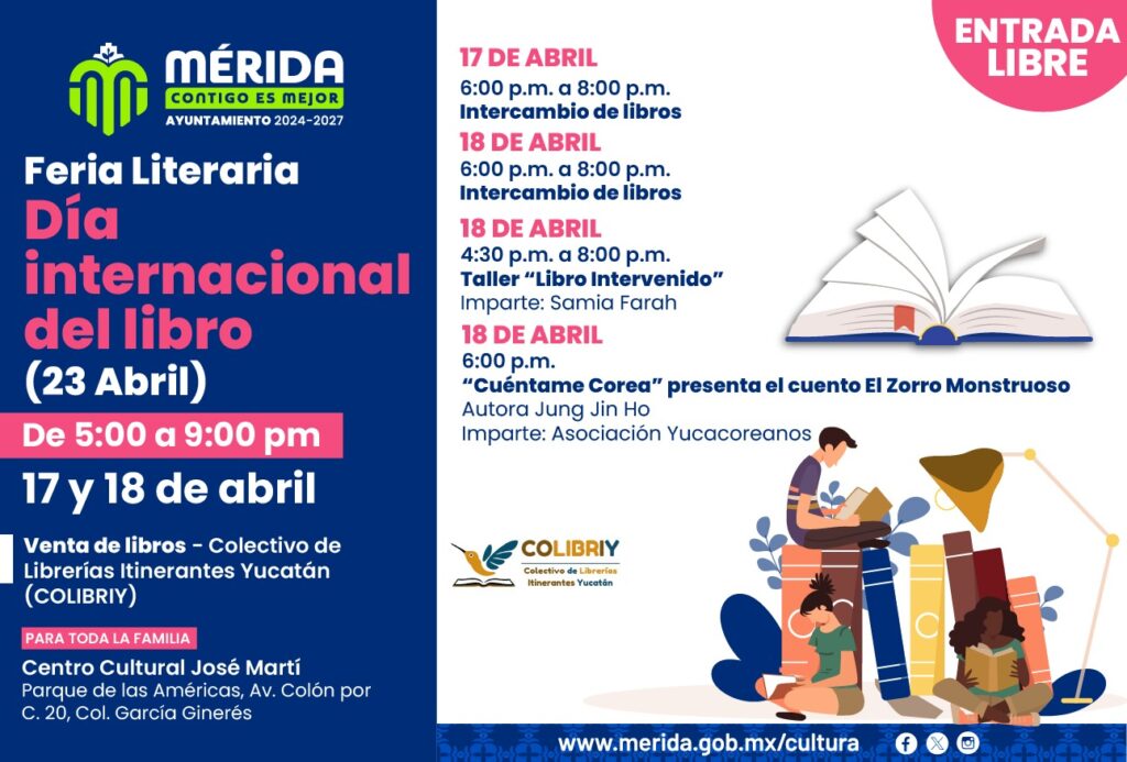Las actividades se realizan en conjunto con el Colectivo de Librerías Itinerantes Yucatán (COLIBRIY).  A estas actividades se suma el concierto “¿Y cómo nace la inspiración?” con Ale Destiny, cuyas letras recorren viajes, arte, naturaleza, amor y nostalgia. La cantautora estará acompañada por Andrea Quijano y Carolina Menéndez en el piano y las percusiones, respectivamente, el sábado 18, a las 8 de la noche.