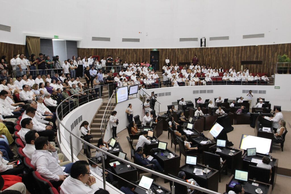 Mérida, Yucatán, 29 de abril del 2026.- Ante diputadas y diputados de la LXIII Legislatura, el Fiscal General del Estado, Juan Manuel León León afirmó que la transformación institucional que encabeza es una decisión irreversible que ya es visible, por lo que es “es una ruta en marcha, que no se detendrá”.