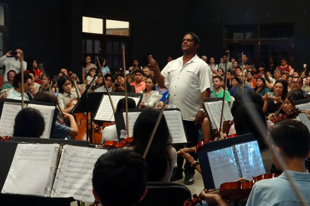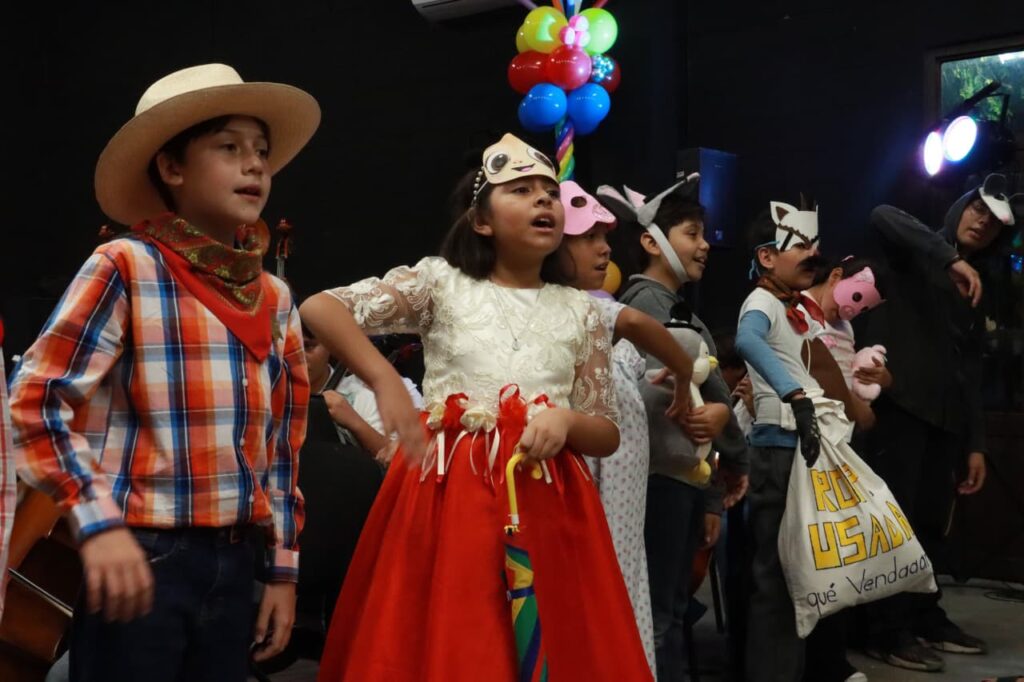 Bajo la dirección de Alexis Arango Fernández, la Orquesta “Renacer” interpretó “La Muñeca Fea”, “La Negrita Cucurumbé”, “Los Cochinitos Dormilones”, “El Ropero” y “El Ropavejero”, acompañada por las voces del Coro Óol K’aay, dirigido por Nazira Chejin Baeza.