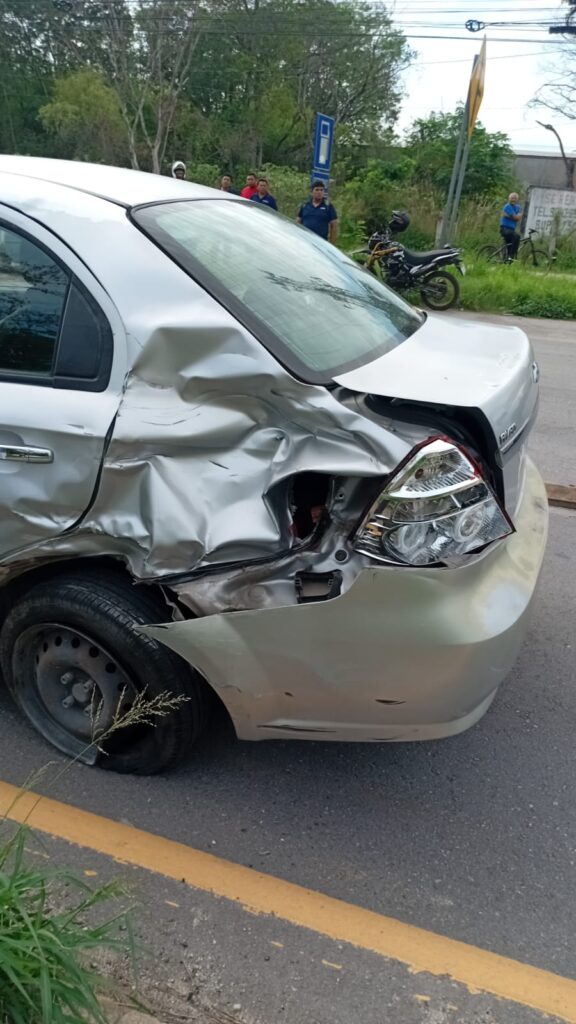 El accidente ocurrió a la altura del kilómetro 10, donde un vehículo Chevrolet Aveo que circulaba sobre el carril central habría intentado cambiar hacia la izquierda, invadiendo el paso de una motocicleta tipo Harley Davidson.