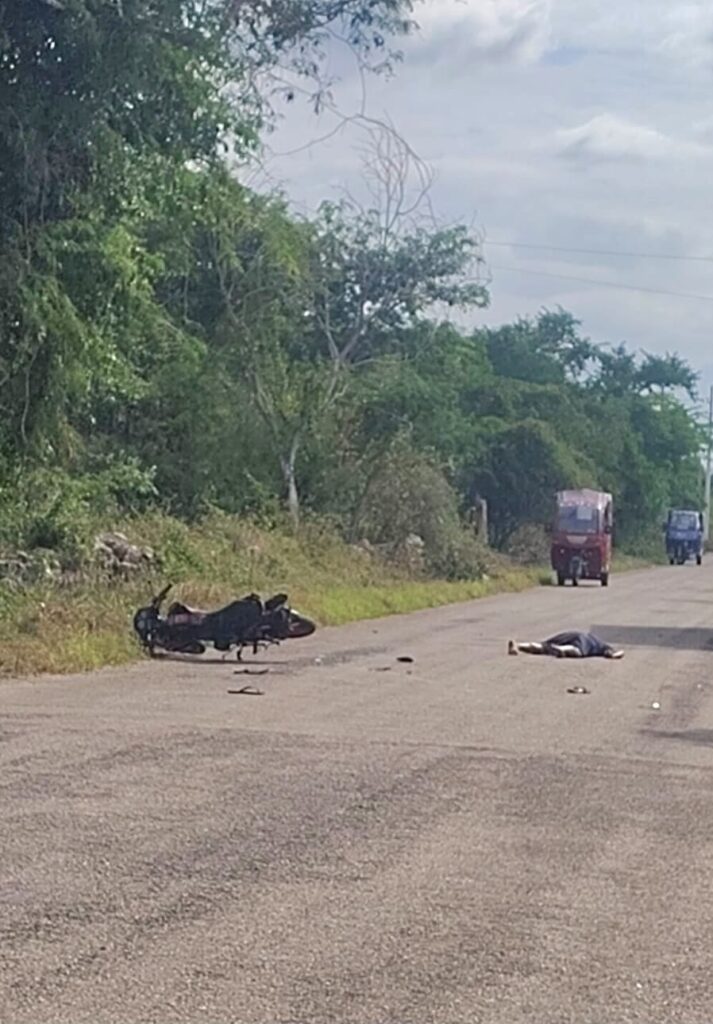 Según testigos, Nah Canché intentó rebasar la camioneta en movimiento, pero calculó mal y se estrelló contra ella, perdiendo el control de su motocicleta.
