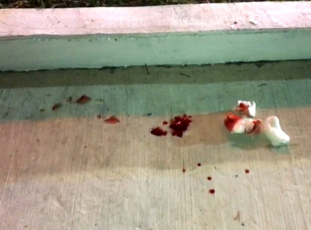 La mujer sacó un cuchillo y le asestó dos cuchilladas en una pierna al hombre, quien cayó al suelo sangrando profundamente.