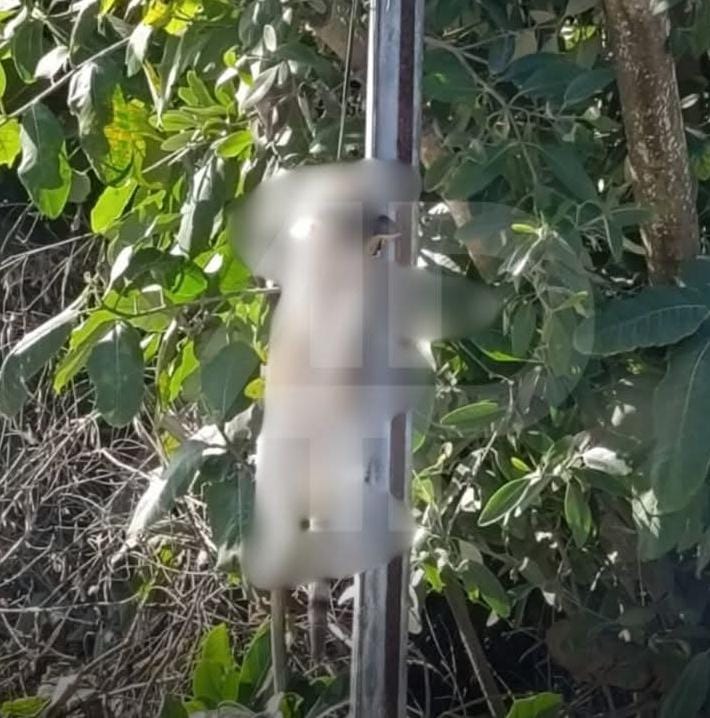 Según testigos, un hombre delgado y canoso fue visto colgando al animal y se dio a la fuga después de ser confrontado por un motociclista.
