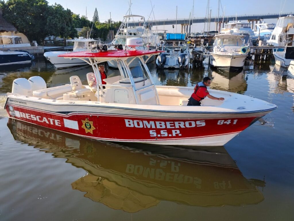 Como parte del despliegue marítimo, una embarcación de rescate zarpó desde el puerto de Yucalpetén y, en apoyo, se sumaron otras unidades tipo Defender de la SSP, que realizan recorridos frente a la costa de Chuburná Puerto, en coordinación con autoridades portuarias y en comunicación permanente con la familia del pescador.