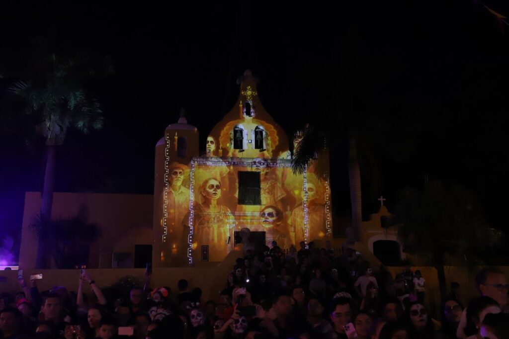 La ambientación en La Ermita sumergió a los espectadores en la esencia de la conmemoración con los video mapping sobre cosmovisión maya y el Janal Pixán, y otro sobre el agua. El kiosco y el Callejón de la Historia deslumbraron con iluminación contextual, decoraciones aéreas y música tradicional, para convertirse en puntos atractivos del recorrido.