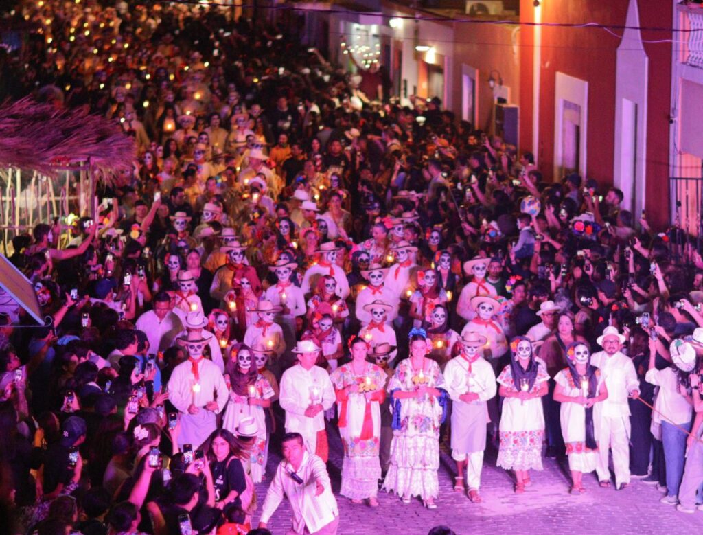 Mérida, Yucatán, viernes 31 de octubre de 2025.- Mérida vivió una de sus noches más esperadas en la temporada del Día de Muertos, con el tradicional Paseo de las Ánimas que reunió en torno a una tradición viva y única en el sureste mexicano a más de 90 mil asistentes encabezados por la presidenta municipal Cecilia Patrón Laviada.