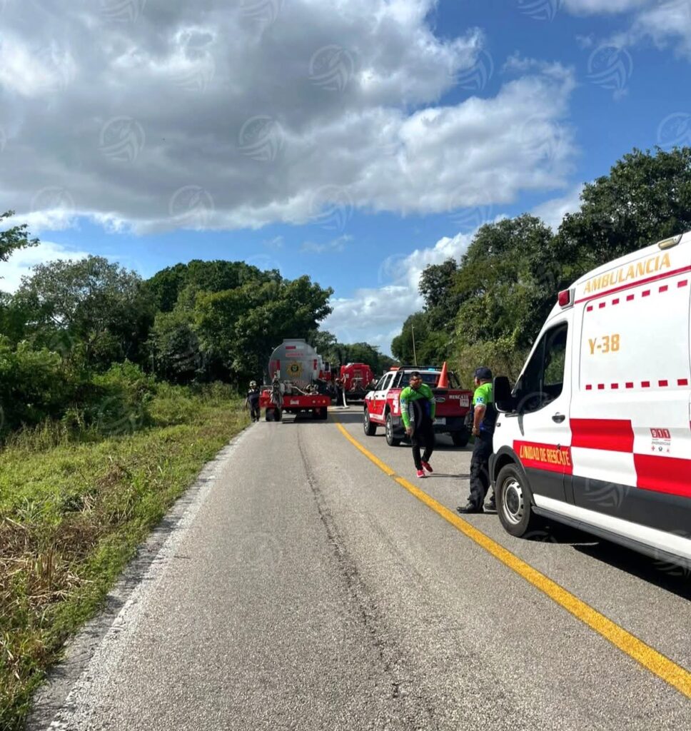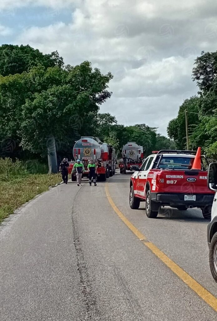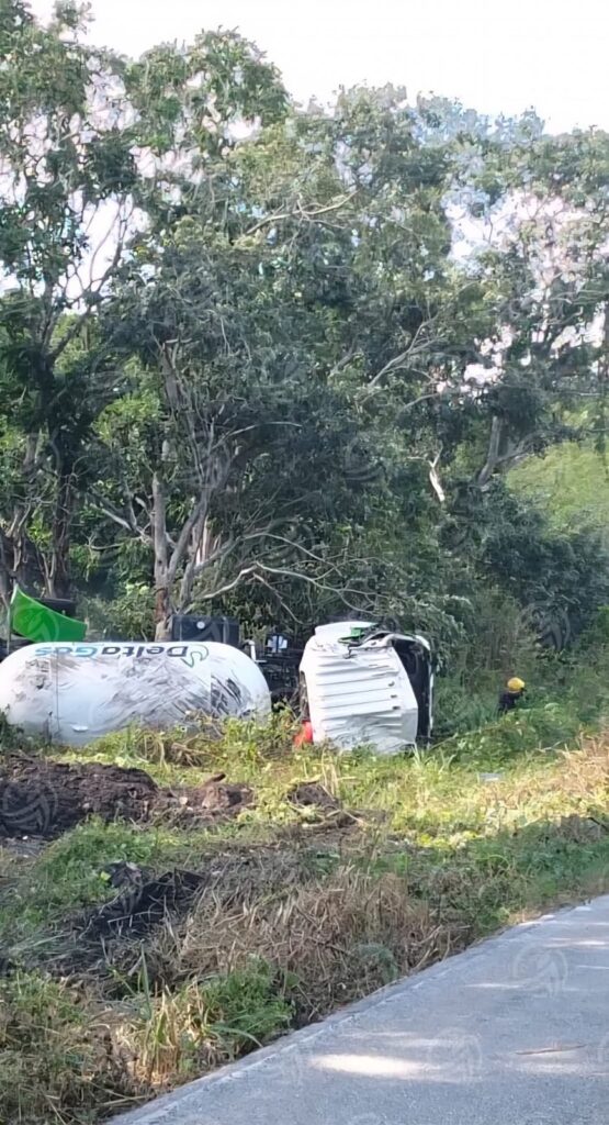 Un carro pipa de la empresa Delta Gas volcó en la carretera Kinchil-Celestún, kilómetro 58+500, en una curva cerrada.