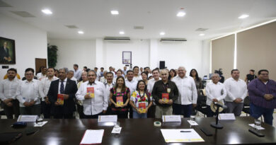 En el acto también estuvieron también presentes Carlos Estada Pinto, rector de la UADY; María Teresa Mézquita, directora de la FILEY y el cronista de la Ciudad, Jorge Cortés Ancona, estos últimos quienes aportaron los textos de las salas 1 y 3 a la colección.