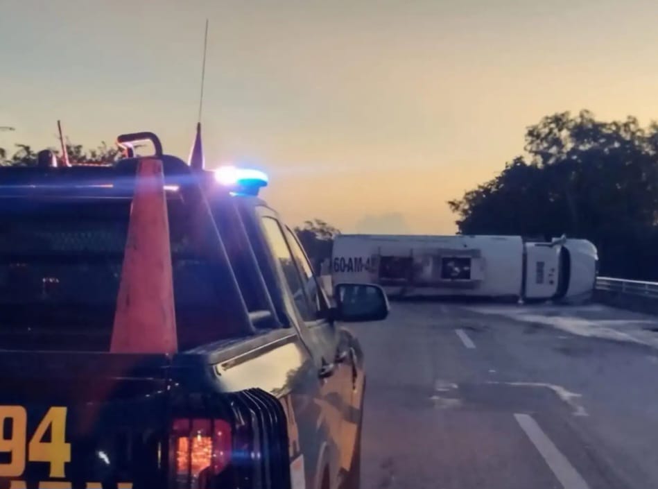 Un tractocamión que transportaba aproximadamente 15,000 litros de diésel volcó en el kilómetro 180 de la carretera federal Valladolid-Cancún, causando un derrame de combustible en la vía. La unidad quedó atravesada en los carriles de circulación, lo que generó una alerta de tránsito por parte de la Secretaría de Seguridad Pública (SSP).