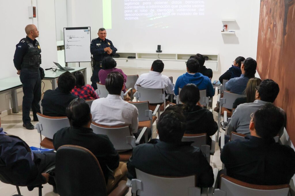 Mérida, Yucatán a martes 3 de febrero de 2026.- A fin de contribuir a la cultura de prevención de extorsión y delitos cibernéticos, personal de la Unidad de Reacción de la Policía Municipal de Mérida puso en marcha un programa dirigido a empleados del sector privado para proporcionarles las herramientas y evitar que sean víctimas de estos delitos.