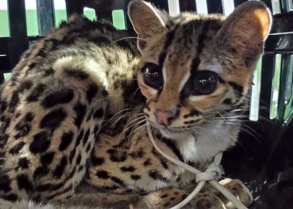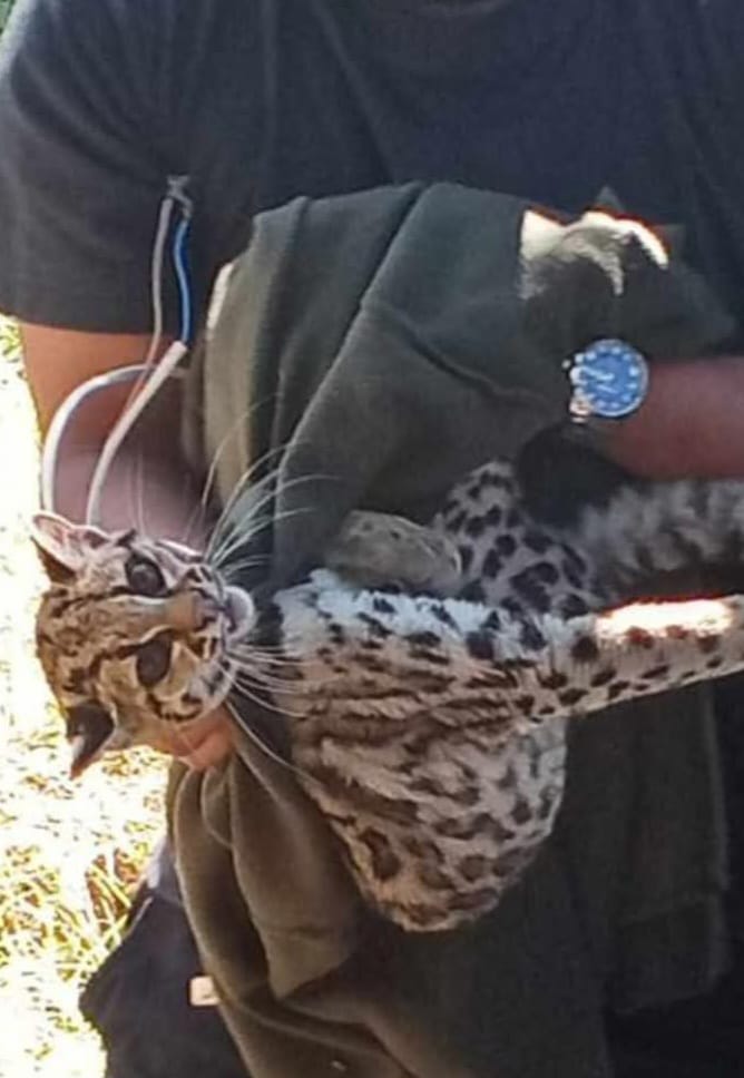 Tras el rescate, el tigrillo fue revisado por un veterinario y, afortunadamente, se encontraba sano y salvo.