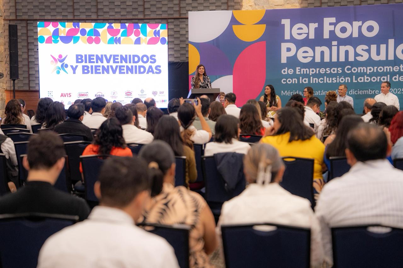 Mérida, Yucatán, a 5 de diciembre de 2025.- Yucatán fue sede del Primer Foro Peninsular de Empresas Comprometidas con la Inclusión Laboral de Personas con Discapacidad, un encuentro inédito en el país que reunió a más de 300 líderes empresariales, autoridades gubernamentales, representantes de asociaciones civiles y especialistas nacionales e internacionales para consolidar una agenda regional que impulse empleos dignos, permanentes y formales para personas con discapacidad.