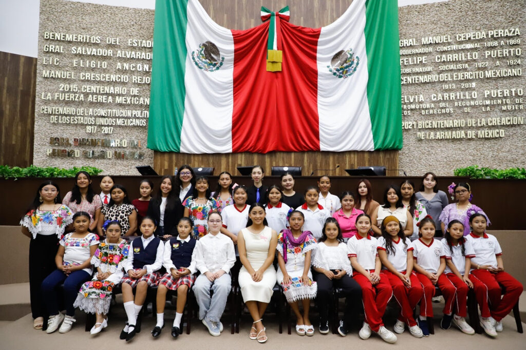 Mérida, Yucatán, a 10 de octubre de 2025.- La voz de 34 niñas y adolescentes provenientes de 14 municipios de Yucatán se hizo presente en la máxima tribuna del Congreso del Estado, donde compartieron opiniones, propuestas e ideas en materia legislativa como parte de su actuación en la primera edición del programa “Diputada Niña por un Día”, aprobado por el Pleno del Congreso en septiembre de este año.