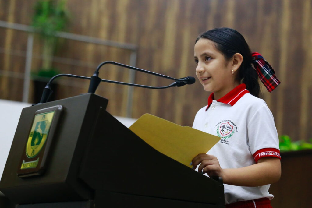 En representación de los participantes, Bárbara Avril Tamayo Palma, originaria de Sinanché, dirigió un mensaje ante el Pleno en el cual expresaba el orgullo y la responsabilidad de representar la voz de las niñas y niños yucatecos, subrayando la importancia de la educación, el deporte, la salud, la seguridad y la justicia social como pilares para un Yucatán más justo e inclusivo.