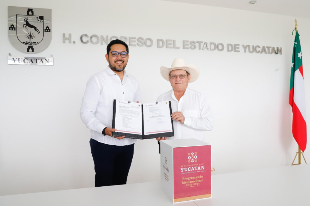 Mérida, Yucatán a 2 de octubre de 2025.- El presidente de la Junta de Gobierno y Coordinación Política del Congreso del Estado, diputado Wilmer Manuel Monforte Marfil, recibió esta mañana en la sede del Legislativo Estatal el documento que contiene los programas de mediano plazo que derivan del Plan Estatal de Desarrollo (PED) Renacimiento Maya 2024-2030.