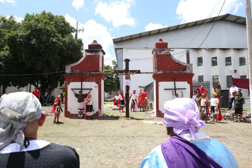 Mérida, Yucatán, a 3 de abril de 2026.- Personas privadas de la libertad participaron en la representación del viacrucis en el Centro de Reinserción Social de Mérida (Cereso), como parte de las actividades religiosas que se realizan en este centro penitenciario durante la Semana Santa.