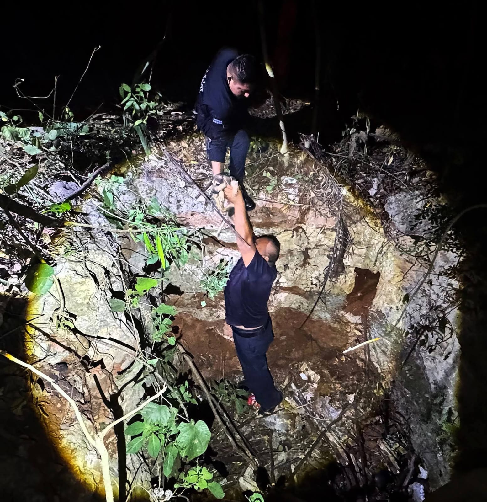 Un perro callejero fue rescatado por la Policía Municipal de Valladolid después de caer en una fosa en un predio abandonado.