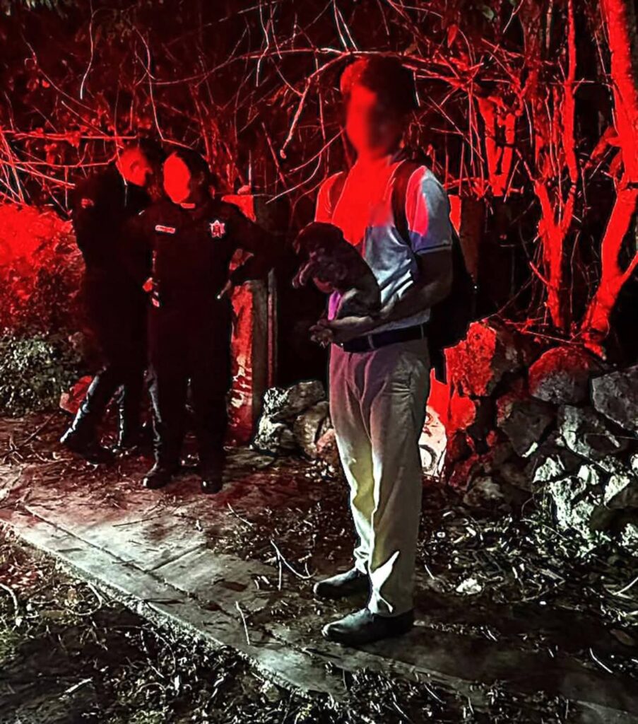 Vecinos de la colonia Oaxaqueña denunciaron al 911 que se escuchaban aullidos dentro de un predio abandonado por lo que rescatistas se presentaron para auxiliar al perrito.