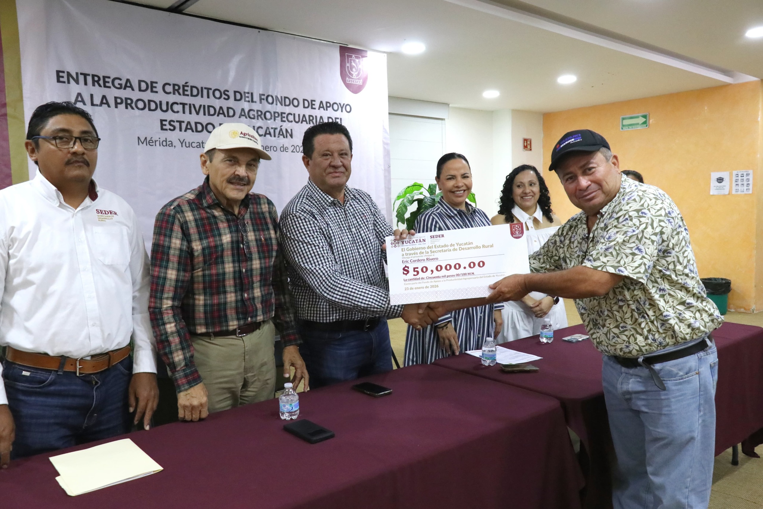 Mérida, Yucatán, a 25 de enero de 2026.- La Secretaría de Desarrollo Rural (Seder) entregó créditos del Fondo de Apoyo a la Productividad Agropecuaria del Estado de Yucatán (Foproyuc) a 51 productoras y productores, con el propósito de fortalecer sus proyectos productivos, promover un desarrollo sostenible y mejorar su economía familiar.