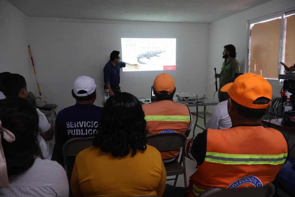 Progreso, Yucatán, a 16 de octubre de 2025.- Con el objetivo de fortalecer los conocimientos técnicos y operativos del personal encargado de atender emergencias relacionadas con fauna silvestre, se llevó a cabo en Progreso el Taller de Manejo Seguro de Cocodrilos, dirigido a elementos de Protección Civil y de la Unidad de Control y Protección Animal del Ayuntamiento, impartido por especialistas de la Secretaría de Desarrollo Sustentable (SDS).