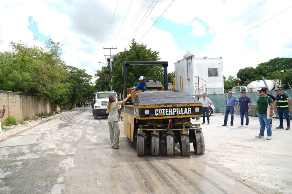 Mérida, Yucatán, sábado 4 de octubre de 2025.- Para dar seguimiento a la agenda conjunta de mejoras e incremento de los servicios en las comisarías de Mérida, la presidenta municipal Cecilia Patrón Laviada supervisó trabajos de repavimentación de más de un kilómetro de calles en Xcanatún.