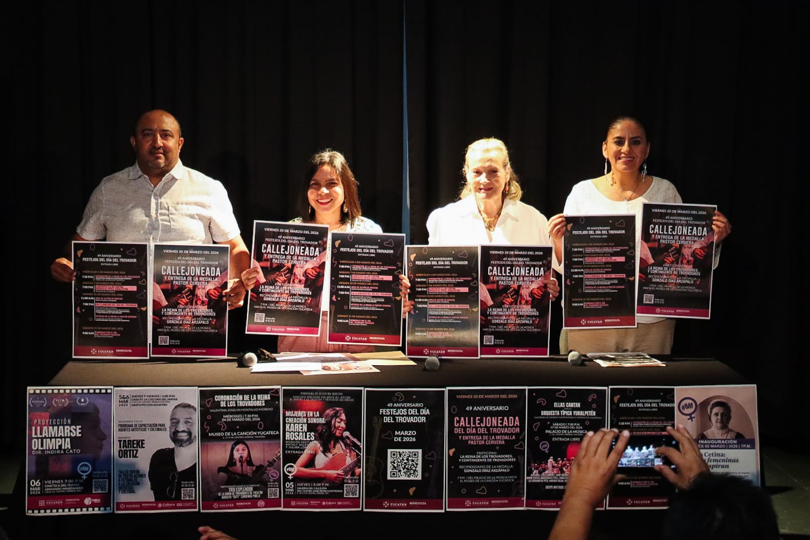 Durante la conferencia también se destacó la Callejoneada del Día del Trovador, que se realizará el 20 de marzo, con un recorrido abierto al público entre canciones y música tradicional, que partirá del Patio de Cuerdas del Palacio de la Música hacia el Museo de la Canción Yucateca.