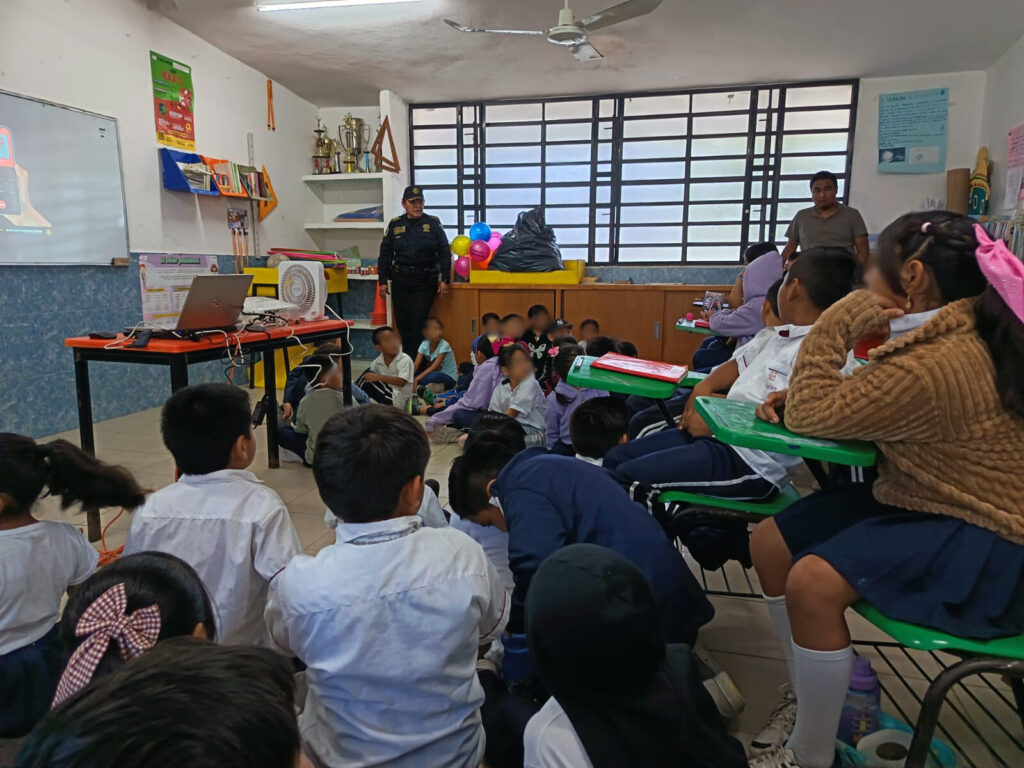 La Secretaría de Seguridad Pública (SSP) mantiene acciones permanentes de proximidad social y prevención del delito en centros educativos del estado, con el propósito de fortalecer entornos seguros para niñas, niños, adolescentes y sus familias, mediante actividades formativas que promueven la corresponsabilidad entre autoridades, comunidad escolar y padres de familia.